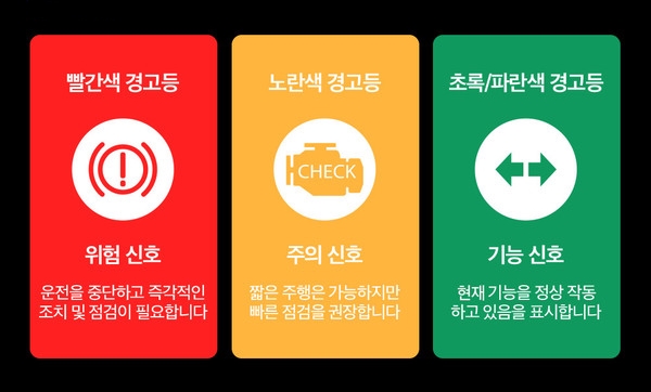 자동차 대시보드 경고등 이해 : 경고등 색상별 의미, 대처 방법, 사용자 팁