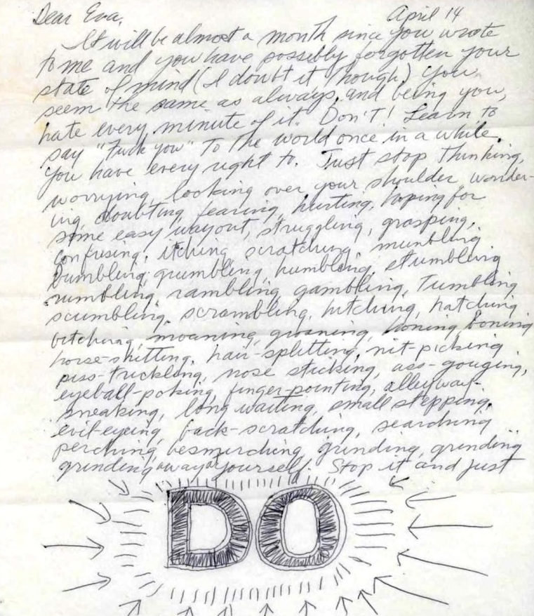 <1960년대 예술가 에반 헤세가 삶을 포기하려 할 때 친구 솔 르윗이 보낸 편지>